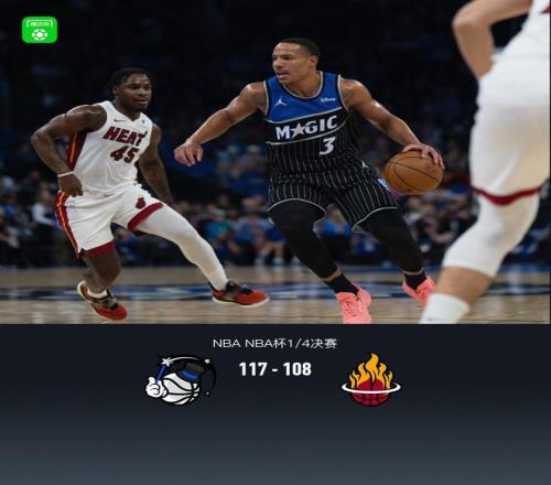 北京时间12月10日NBA NBA杯1/4决赛,奥兰多魔术对阵迈阿密热火。半场魔术56-57热火,最终魔术117-108热火。奥兰...