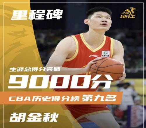 在比赛中,队长胡金秋用一记三分球,让自己生涯总得分突破9000分大关,位列CBA历史总得分榜第9位。