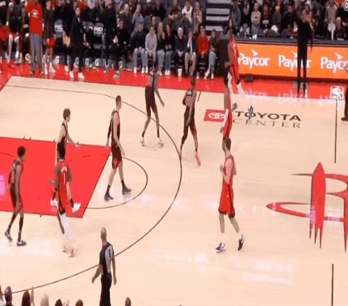 下半场回来,小贾巴里史密斯进攻端率先找到手感,不断地突破、抛投帮助球队咬住局面。但是外线的投射,仍旧铁的离谱。戴维森里突外投连得五分,而布泽利斯的前场篮板,加上外线的三分,以及武切维奇的中投,始终僵持比分。特雷琼斯的突破,几乎成为火箭的防守致命弱点。三节战罢,公牛暂时落后2分。